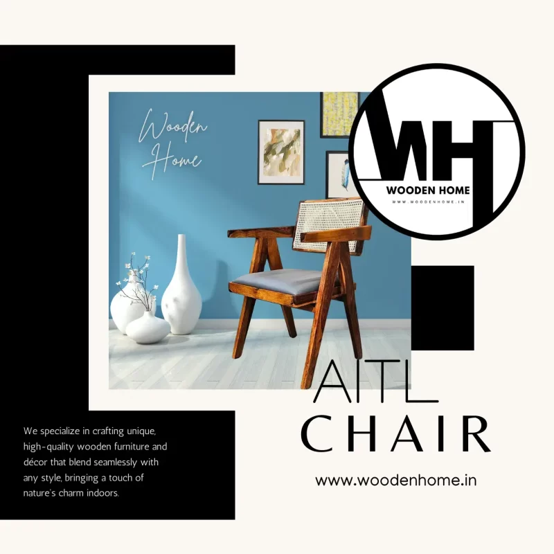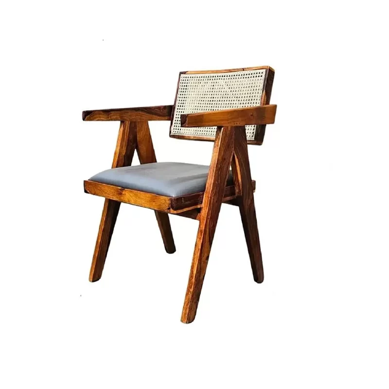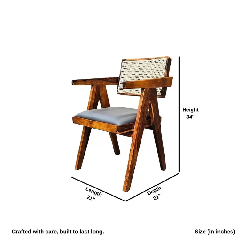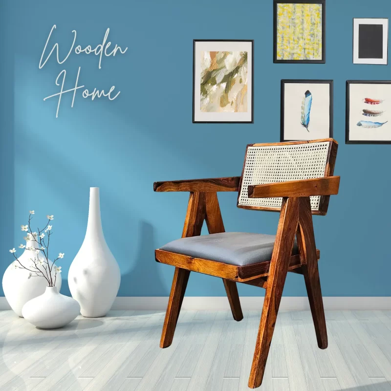 Aitl Cane Chair by Wooden Home, crafted from solid wood and cane in a warm brown finish. Designed with durability and natural charm, this chair adds timeless style to dining rooms, cafes, or living spaces.