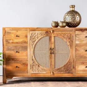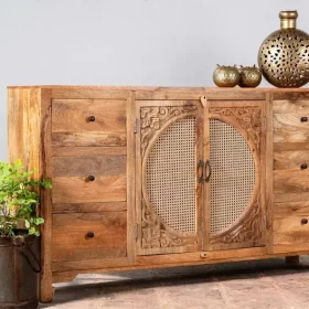 Crafted from solid mango wood Sideboard, this piece not only offers versatile storage but also serves as a stunning focal point in any room.