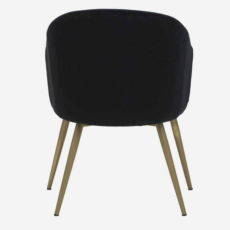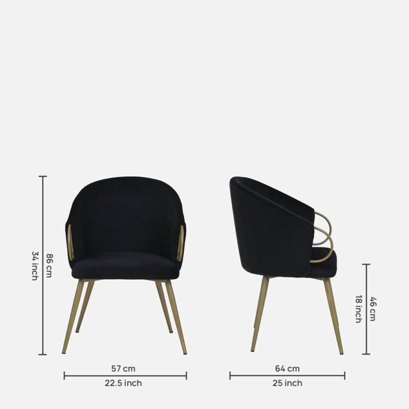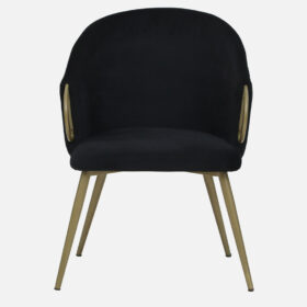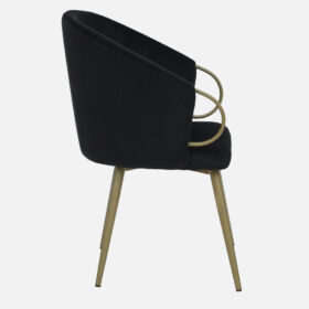 Bring sophistication to your interiors with this elegant Black Fabric Accent Chair with Gold Finish. Designed with a sleek curved backrest and stylish golden metal armrests, this chair enhances both comfort and décor. Its minimal yet classy look makes it a versatile addition to modern homes and offices.