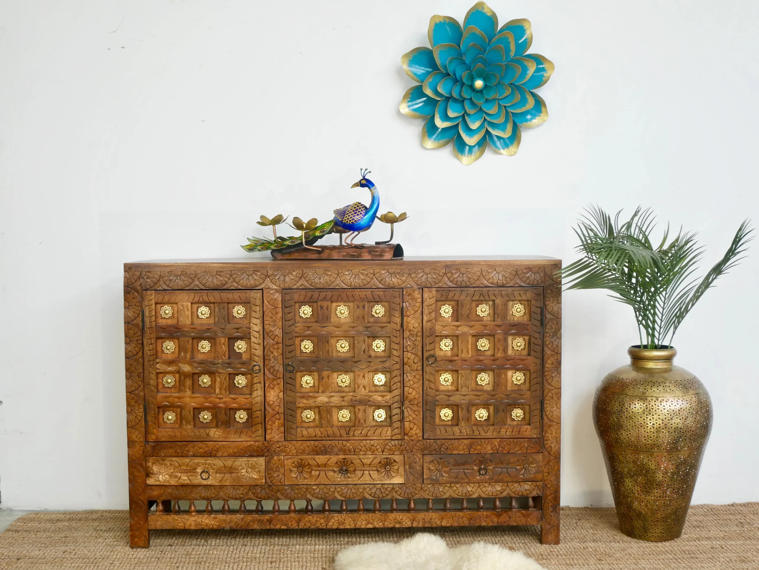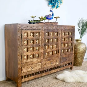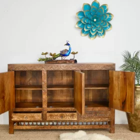 Crafted from solid mango wood Sideboard, this piece not only offers versatile storage but also serves as a stunning focal point in any room.