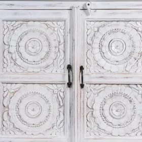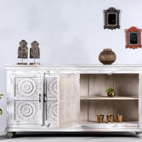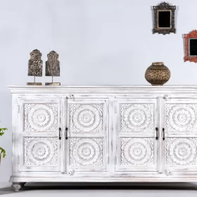Hand Carved Floral Design Sideboard White Distressed