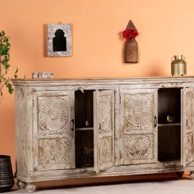 Crafted from solid mango wood Sideboard, this piece not only offers versatile storage but also serves as a stunning focal point in any room.