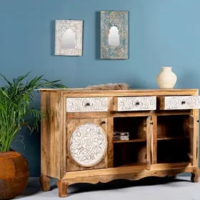 Crafted from solid mango wood Sideboard, this piece not only offers versatile storage but also serves as a stunning focal point in any room.