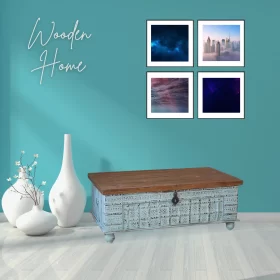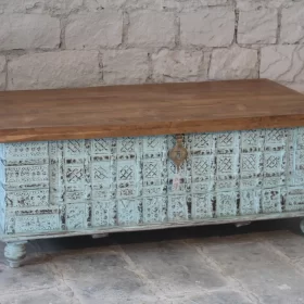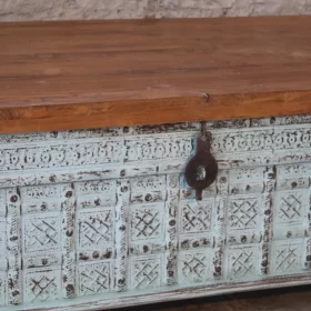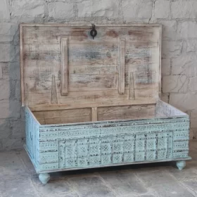 Hand Carved Wooden Storage Trunk