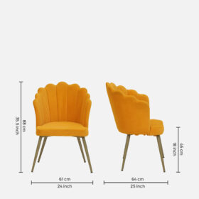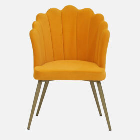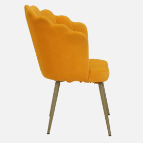 Upgrade your interiors with this beautifully crafted Orange Velvet Accent Chair. Its unique scallop shell design and vibrant upholstery make it a statement piece for modern homes. Perfect for living rooms, bedrooms, offices, or lounges, this chair blends comfort with contemporary style.