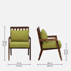 | Color | Wood Frame: Deep Brown / Dark Walnut Cushions: Olive Green (or Lime Green) |