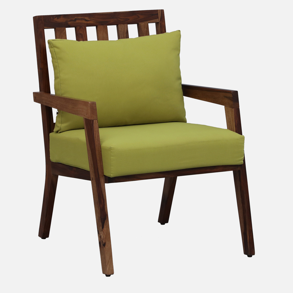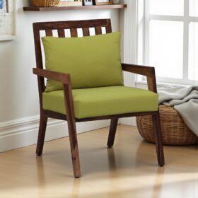 Unwind in style with this Solid Sheesham Wood Lounge Chair, featuring a rich Dark Walnut frame and plush Olive Green upholstered cushions for ultimate comfort. Designed with clean lines and a subtle Mid-Century Modern flair, this 34-inch tall armchair is the perfect blend of aesthetic sophistication and relaxed seating. Ideal for creating a cozy reading nook or completing your contemporary living room set.