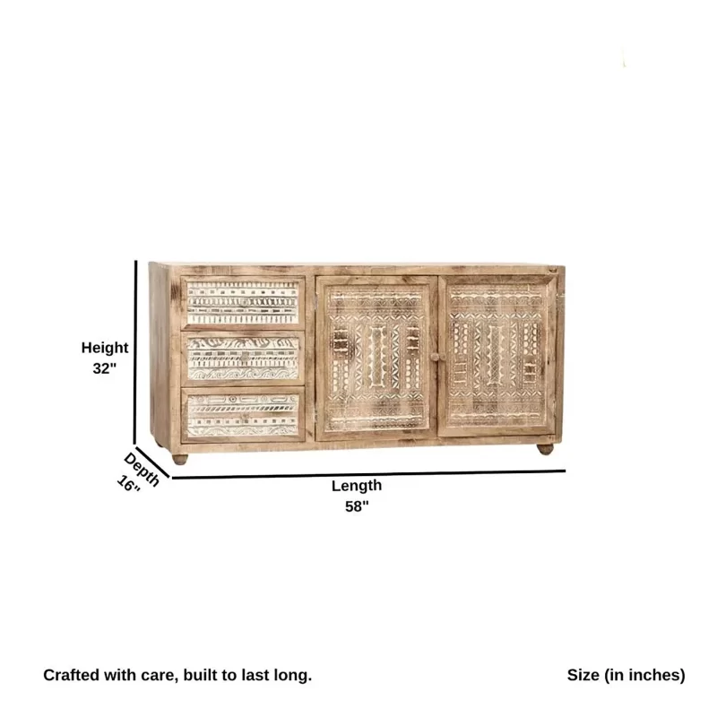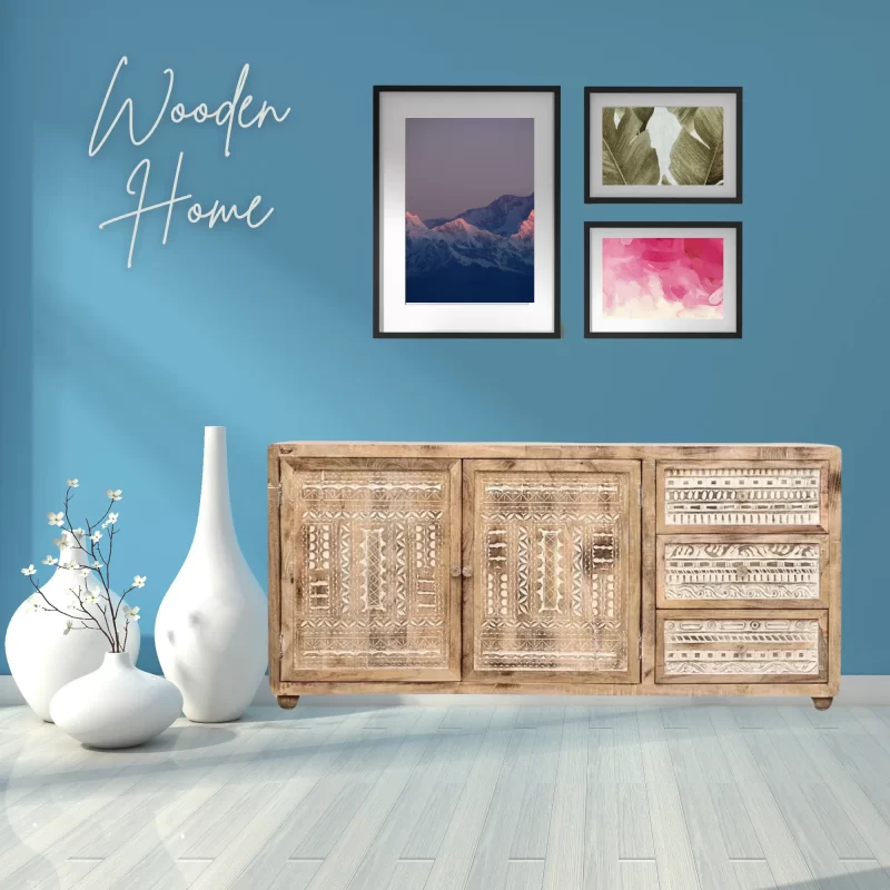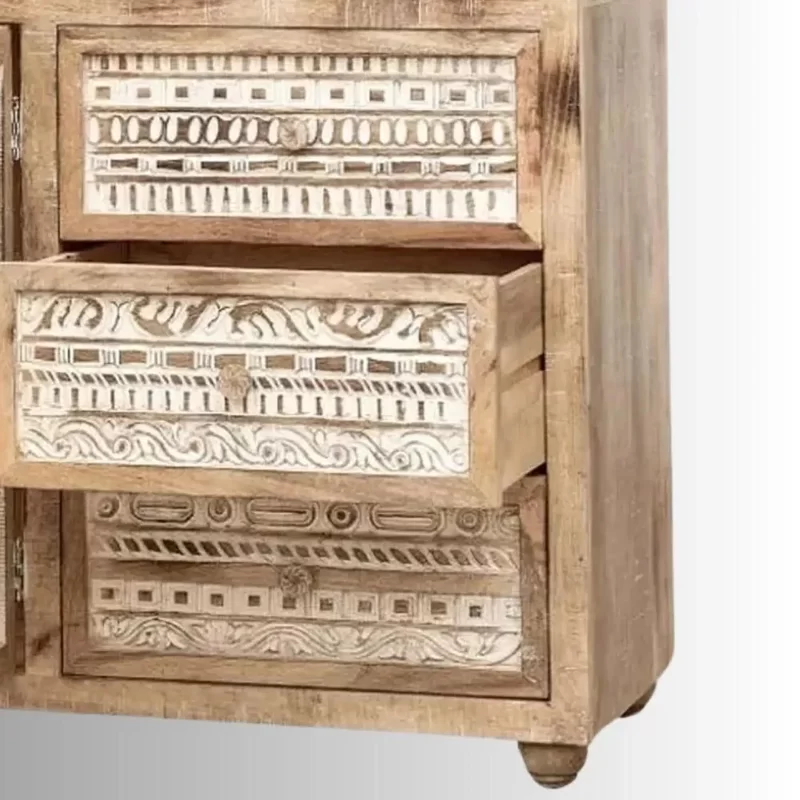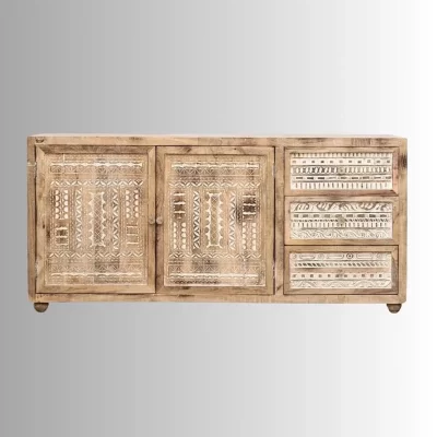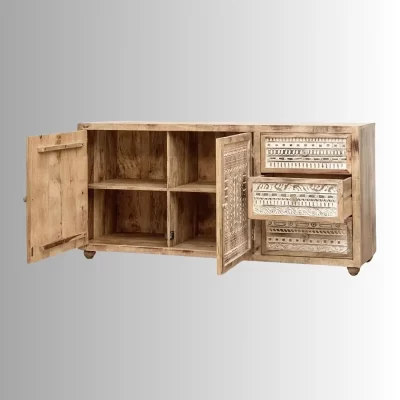 Crafted from solid mango wood Sideboard, this piece not only offers versatile storage but also serves as a stunning focal point in any room.